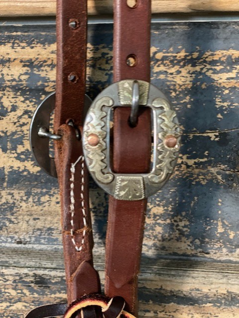Double Buckle Slide Headstall. 5/8 Inch. Heavy oiled. Fancy Buckle.