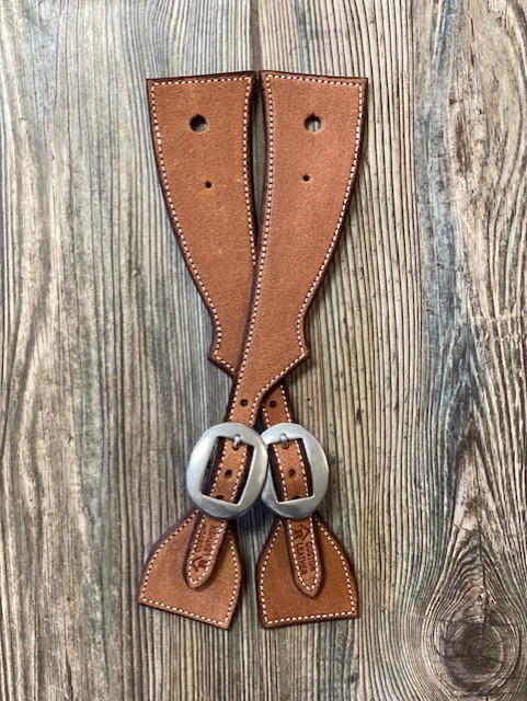 Natural Roughout Spur Straps. Handmade by Ross Bullinger. Stainless steel buckles.