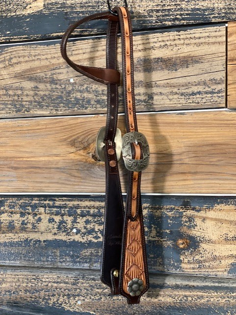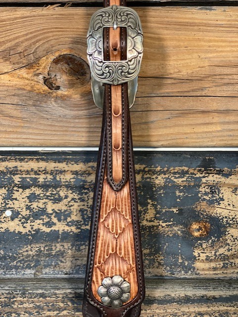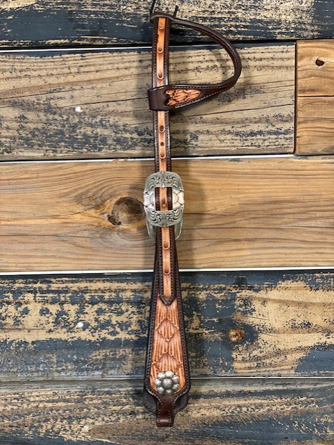 Dylan Randall Slide Ear Show Headstall. Two-toned Floral Tooling. Decatur, TX.