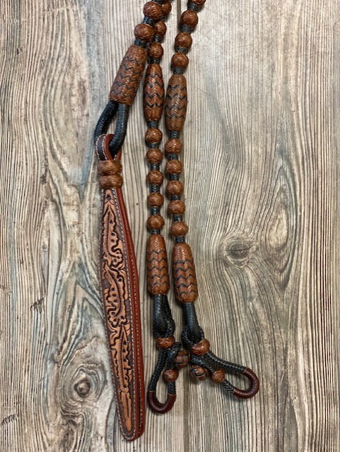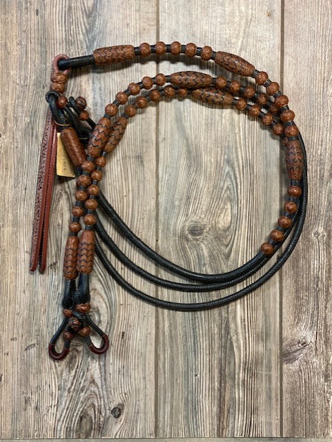 30 Plait Rawhide Romal Reins. 51″ Rein.  Great weight and feel.