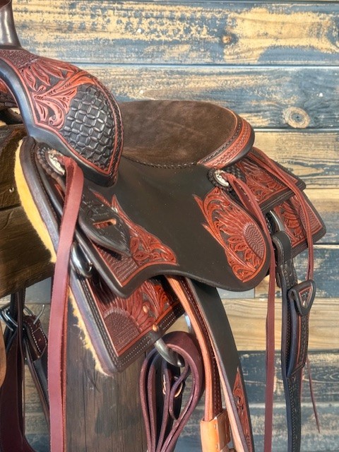 New Saddle House Custom Lady Cowhorse. 16″ seat.