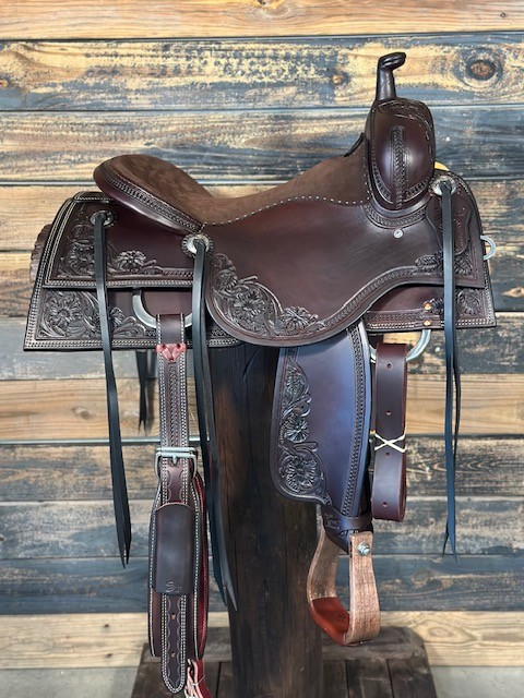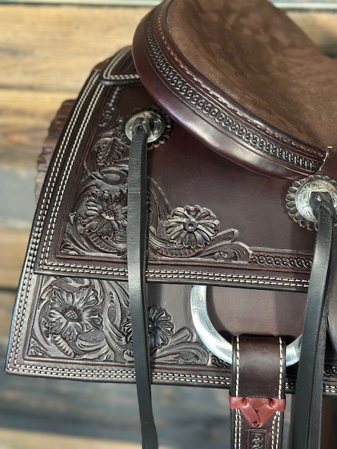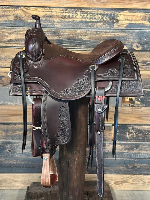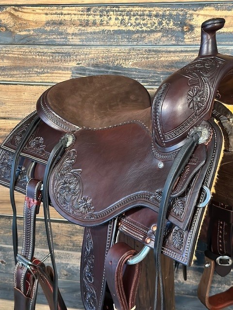 New Saddle House Custom Lady Cowhorse. 16.5″ seat.