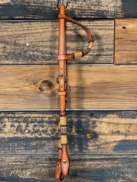 Slide Ear Headstall. Double Buckle. Rawhide Accents. Light Oil.