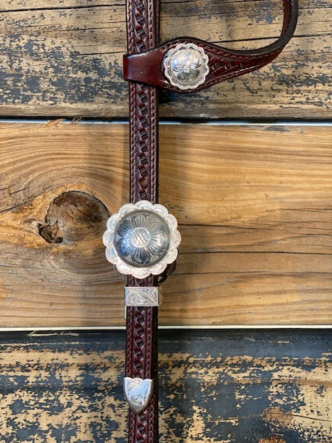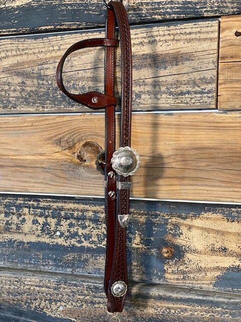 New Silver Show Headstall. Dark Oil. Slide Ear.