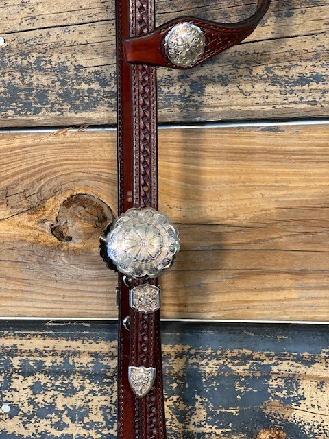 New Silver Show Headstall. Dark Oil. Slide Ear.