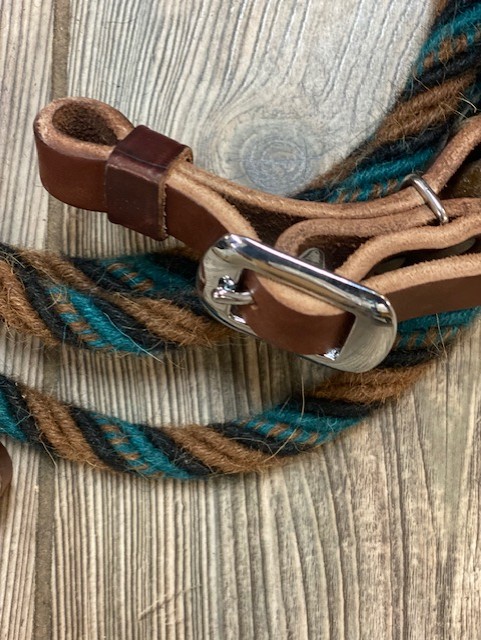 T3 Weavers 1/2″ Alpaca Loop Rein. 9.5′ Long. Leather Slobber Straps.