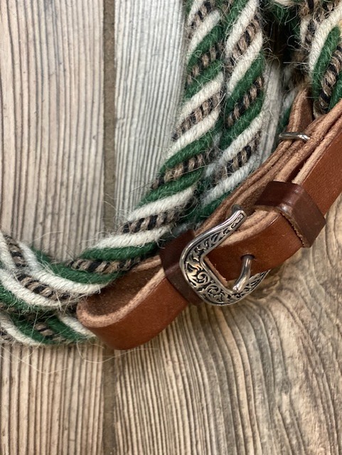 T3 Weavers 1/2″ Alpaca Loop Rein. 9.5′ Long. Leather Slobber Straps with Jeremiah Watt Buckles.