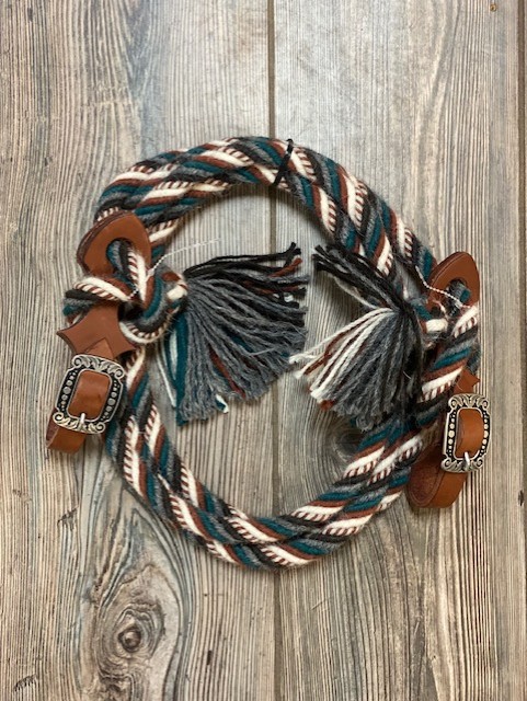 T3 Weavers 5/8″ Alpaca Loop Rein. 9.5′ Long. Leather Slobber Straps with Jeremiah Watt Hardware.